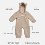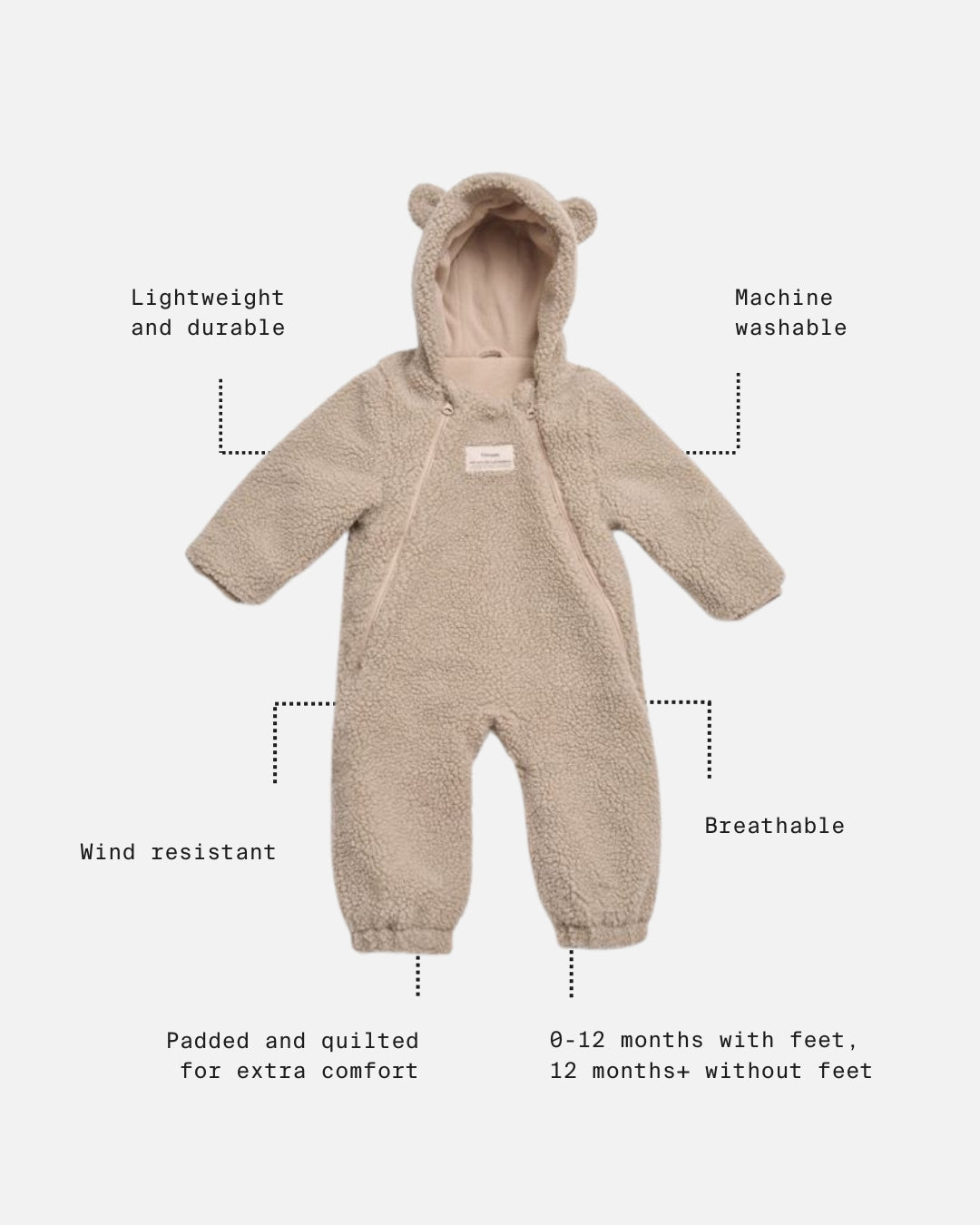 Keep your baby warm and cozy in the Alf Pramsuit, made from luxuriously soft teddy borg fabric crafted from 100% certified recycled polyester. This eco-friendly pramsuit delivers superior cuddle-level comfort and insulation, perfect for chilly days and outdoor adventures. Available in four sizes, the Alf pramsuit features double water-repellent zips for quick and easy changes. Designed with practical foot openings to support early walking (sizes 0-12 months include enclosed feet for extra warmth), it’s tailored for both comfort and mobility. Combining sustainable materials with thoughtful design, the Alf pramsuit is a must-have for parents seeking soft, warm, and durable baby outerwear that’s perfect for every cold-weather outing.