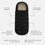 The Alma Eco Universal Quilted Footmuff is perfect to keep your baby or toddler toasty warm and comfortable during those chilly days. Designed with a quilted exterior, it ensures a cosy and snug journey. Expertly crafted from 100% certified recycled materials, the Alma footmuff features a water-repellent outer layer and a soft, luxurious 100% recycled teddy fleece lining for added warmth and comfort. Also available with matching stroller mittens