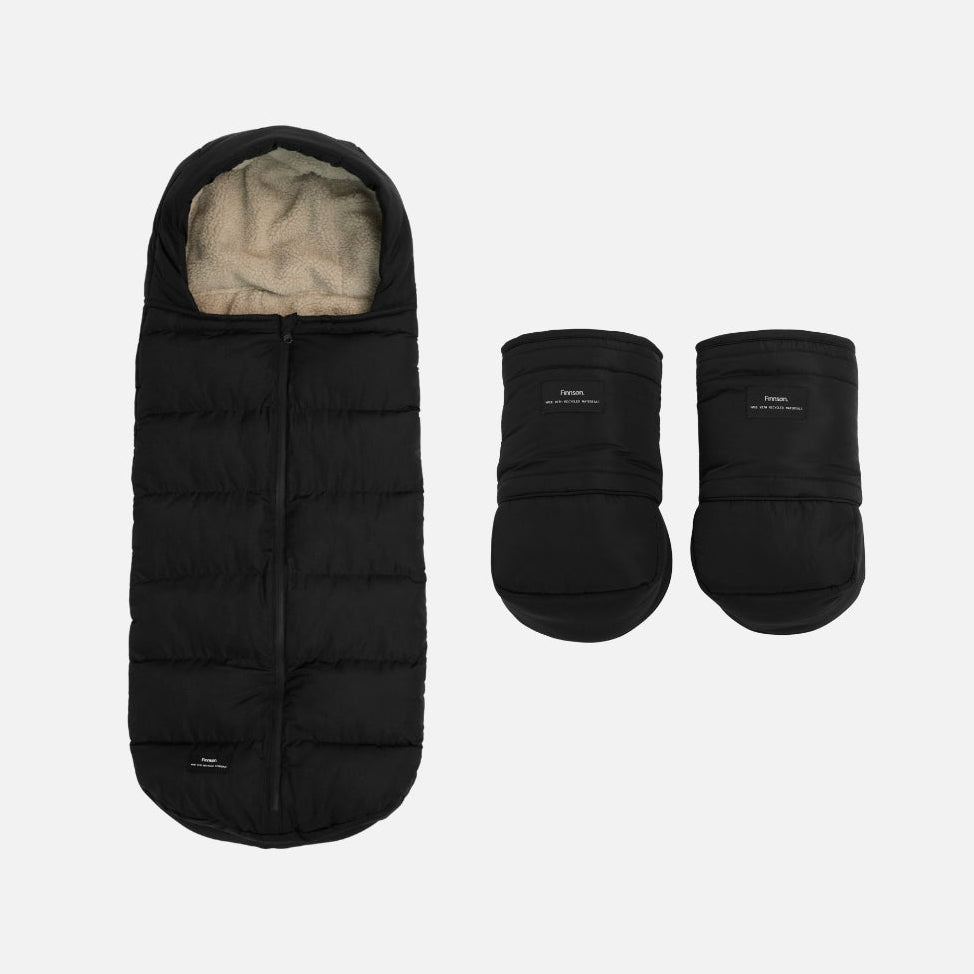 Stay warm and cozy on chilly winter strolls with our Astrid Eco Stroller Mittens in Black and Alma Universal footmuff in Black bundle. Made from 100% certified recycled materials, both items feature a water-repellent exterior and plush recycled teddy fleece lining for ultimate comfort. Keep your little one warm and snug on the go. Crafted from the same recycled materials, both items offer a water-repellent outer layer and luxurious teddy lining for added warmth. Simplify your winter outings with this eco-friendly bundle.