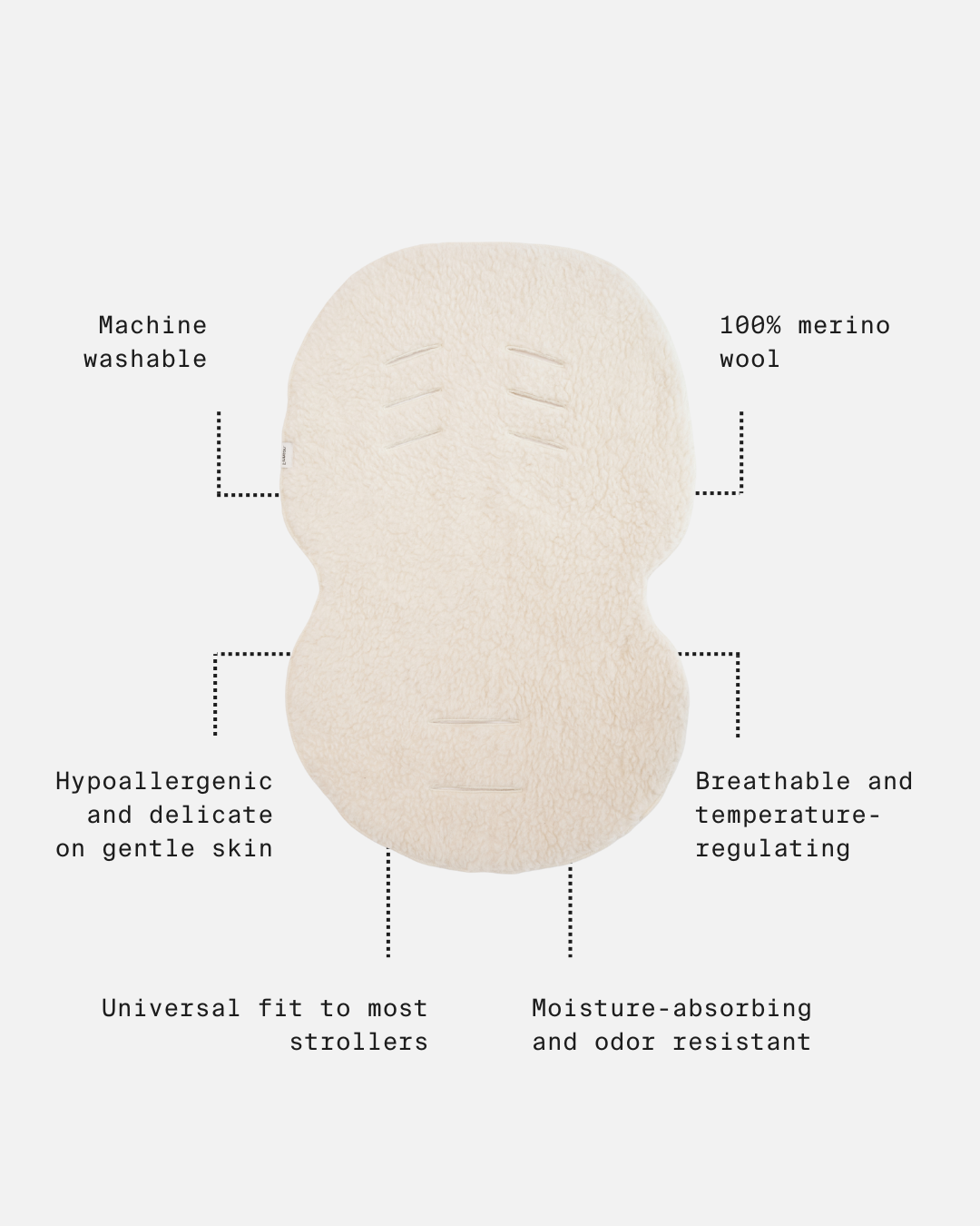 Crafted from 100% natural Merino wool, the Astor pram liner offers year-round comfort and luxury for your little one. Naturally breathable and temperature-regulating, it keeps your child warm in winter and cool in summer - perfect for all seasons. Merino wool's moisture-absorbing properties also help keep your stroller dry, fresh, and clean. Gentle on delicate skin, the Astor liner is soft, hypoallergenic, and plush - adding a cozy layer of comfort to every outing. Designed with precision-cut harness slots, it’s compatible with most universal five-point harness systems, ensuring a secure and snug fit in your pram or stroller.