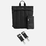 The RAE Eco Changing Backpack in Black is a versatile hands-free bag that can be worn three ways - on your back, as a tote, or attached to your stroller. Made from 100% certified recycled PET Polyester, this backpack is both water repellent and machine washable. Adjustable back straps ensure a comfortable fit, and a padded changing mat is included for added convenience. Pair it with the high-quality OSTEN Universal Stroller clips in Black to easily fix your Finnsøn bags to your stroller for convenient access. Truly a must-have bundle for on-the-go parents.