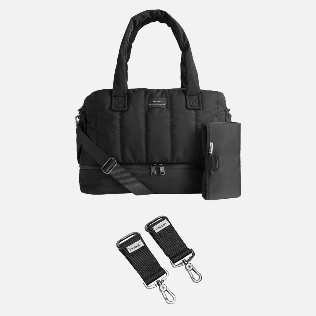 The INNES Eco Quilted Changing Bag is the ultimate daily companion for parents on the go. This medium-sized lightweight bag is not only durable and versatile but also eco-friendly, being made from 100% certified recycled PET polyester. With ample storage, a convenient crossbody strap, and a waterproof lined base compartment for wet clothing or separate organisation, this bag has everything you need. Additionally, it comes with a padded travel changing mat and a thermo insulated bottle holder pocket. Pair it with the high-quality Osten Universal Stroller clips for easy attachment to your stroller or pram handles for added convenience during your adventures.