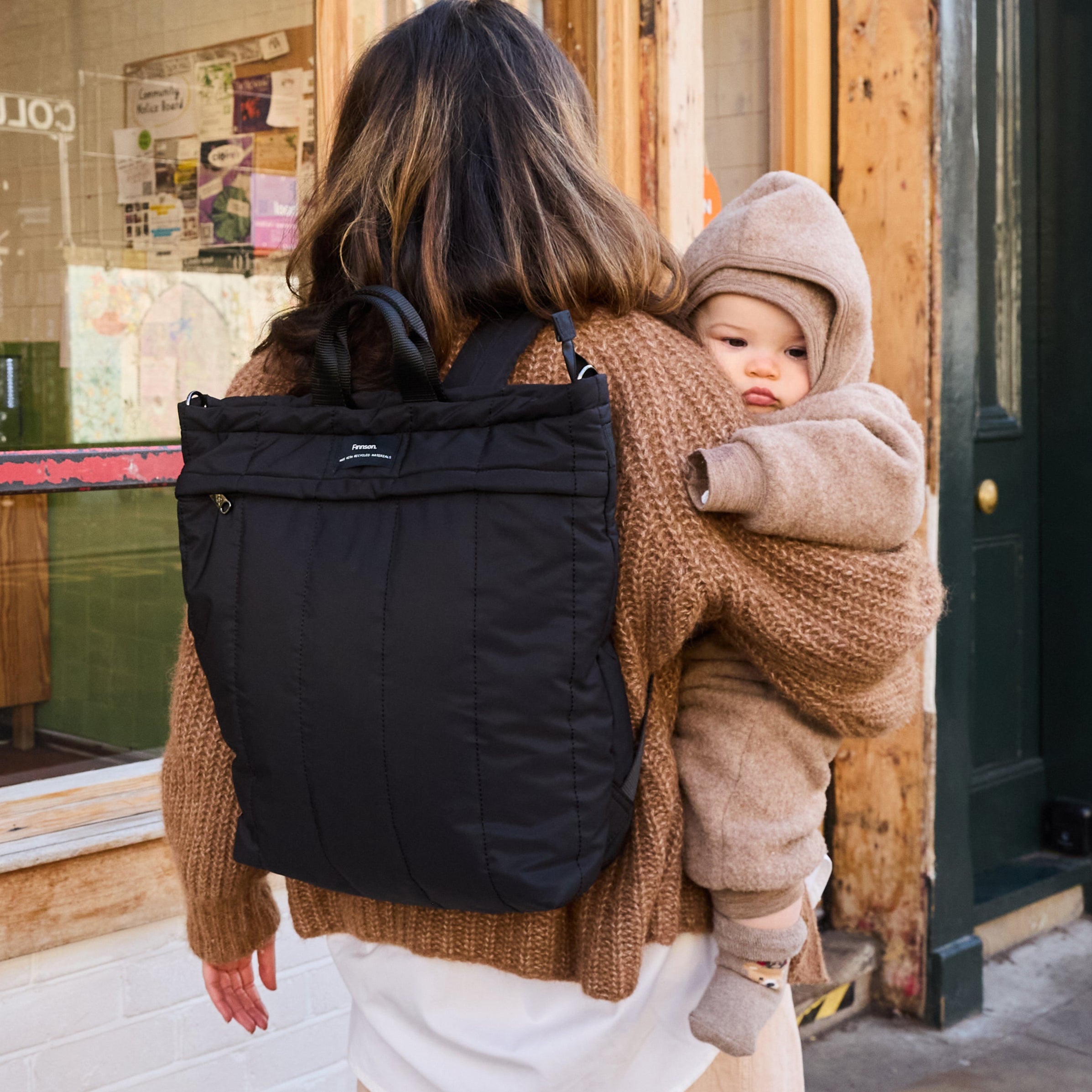 The RAE Eco Changing Backpack in Black is a versatile hands-free bag that can be worn three ways - on your back, as a tote, or attached to your stroller. Made from 100% certified recycled PET Polyester, this backpack is both water repellent and machine washable. Adjustable back straps ensure a comfortable fit, and a padded changing mat is included for added convenience. Pair it with the high-quality OSTEN Universal Stroller clips in Black to easily fix your Finnsøn bags to your stroller for convenient access. Truly a must-have bundle for on-the-go parents.