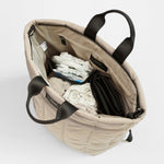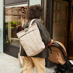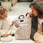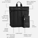 Rae is our hybrid backpack that you can wear three ways: on your back, hand-held or attached to your stroller. It’s adjustable back straps unclip for easy stroller attachment, giving you the ultimate unisex hands free bag with minimal fuss. Expertly crafted in 100% certified recycled PET Polyester, the Rae changing backpack features water repellent and machine washable external and internal materials. Also includes a padded changing mat in black.