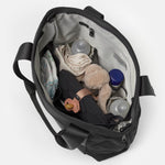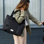 Made for milestones, the Selby changing bag is designed to grow with you and adapt to your needs. Well-organised external and internal pockets allow you to pack for whatever the day brings - with or without the kids. The Selby changing bag features sturdy handles plus hands-free wearability with the crossbody strap. Made with 100% certified recycled PET Polyester, the classic black exterior and grey contrast lining is water repellent and machine washable. Also includes a padded changing mat in black.